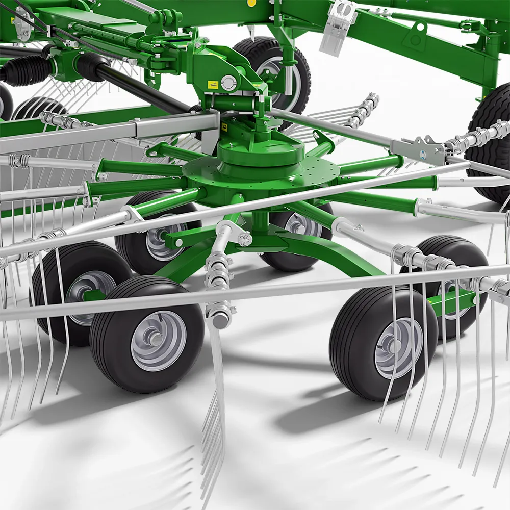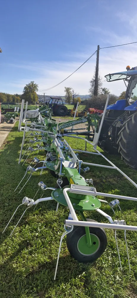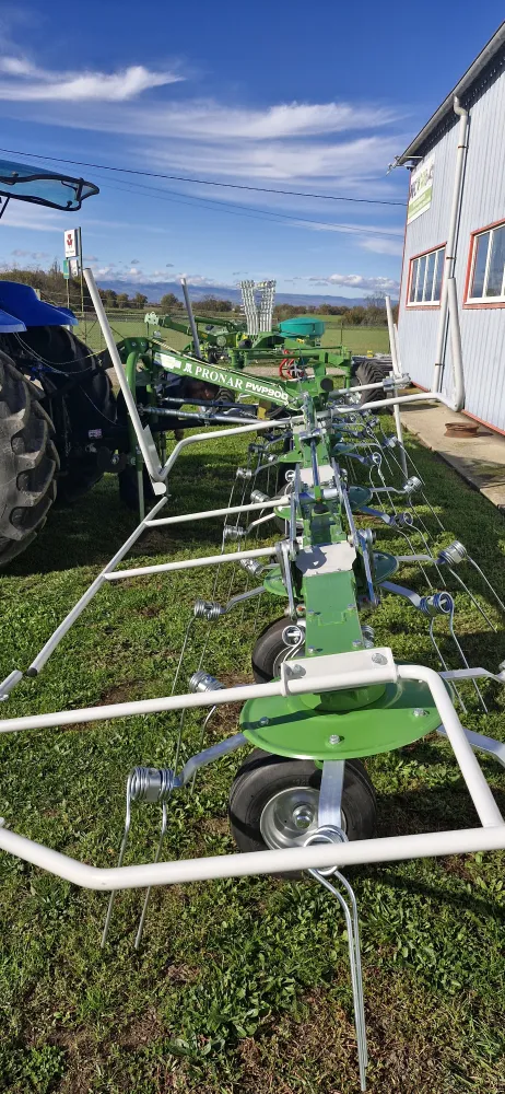 MECAGRI 42 à SAINT-GALMIER, vous propose la vente d'ANDAINEUR ZKP800 marque PRONAR . Bâche règlable, 6 roues en tandem sous les rotors, règlage hydraulique de la largeur du travail, boîtier rotatif à bain d'huile avec règlage de la hauteur